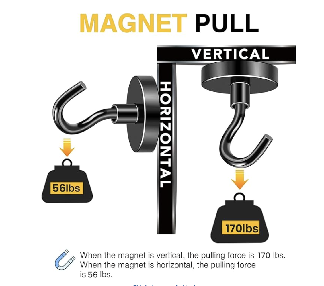 DIYMAG Black Magnetic Hooks, 170 LB Heavy Duty Strong Magnets with Hooks Rare Earth Neodymium Fridge Magnet for Grill Hanging Cruise Cabins Ship Essentials 12 Packs
