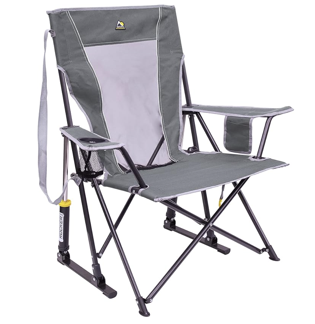 GCI Outdoor Comfort Pro Rocker Outdoor Rocking Chair with Beverage Holder- This chair is so comfortable and folds into nothing for your van garage space!